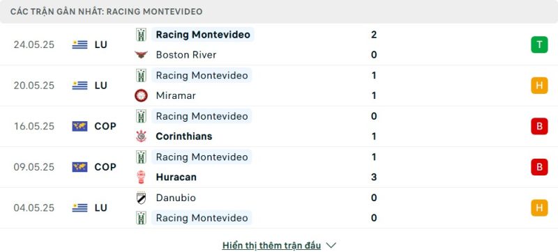 - Phong độ của Racing de Montevideo