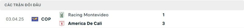 Thành tích đối đầu của América de Cali vs Racing de Montevideo