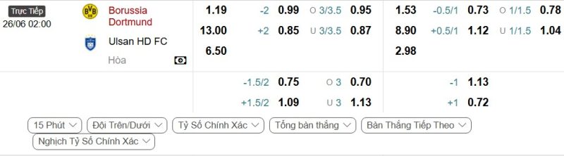 - Kèo tỷ số bóng đá hiệp 1: Borussia Dortmund 2-0 Ulsan HD