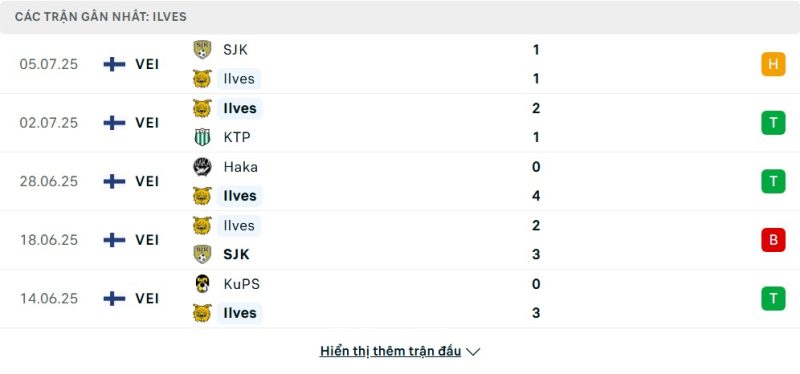 5 trận gần nhất của Ilves: D-W-W-L-W