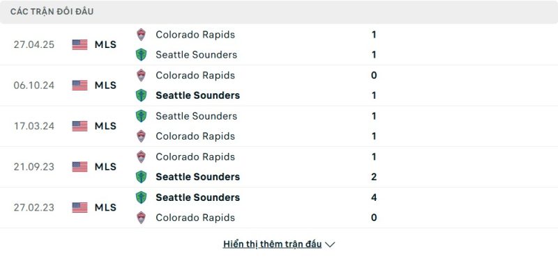 Thành tích đối đầu của Seattle Sounders FC vs Colorado Rapids