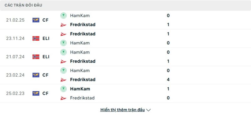 Thành tích đối đầu của HamKam vs Fredrikstad