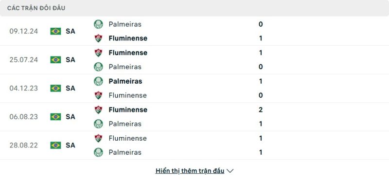 Thành tích đối đầu của Fluminense vs Palmeiras