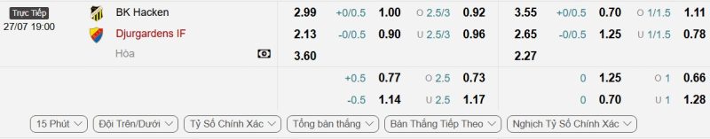 Bảng Tỷ lệ kèo bóng đá BK Häcken vs Djurgårdens IF