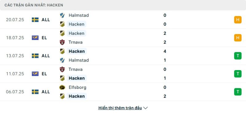 BK Häcken đang xếp thứ 8 với 22 điểm sau 16 trận, cùng hiệu số -1. Dù chưa thể chen chân vào nhóm đầu, nhưng đội bóng này đang có chuỗi 5 trận bất bại trên mọi đấu trường, trong đó có 3 chiến thắng trước các đối thủ như Elfsborg hay Trnava. Với tinh thần đang lên, họ được kỳ vọng sẽ tiếp tục duy trì đà ổn định ở trận đấu tới.