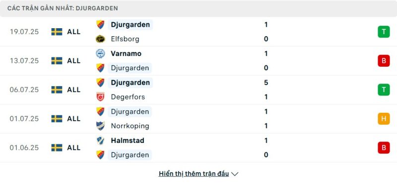 Thống kê phong độ gần đây BK Häcken vs Djurgårdens IF