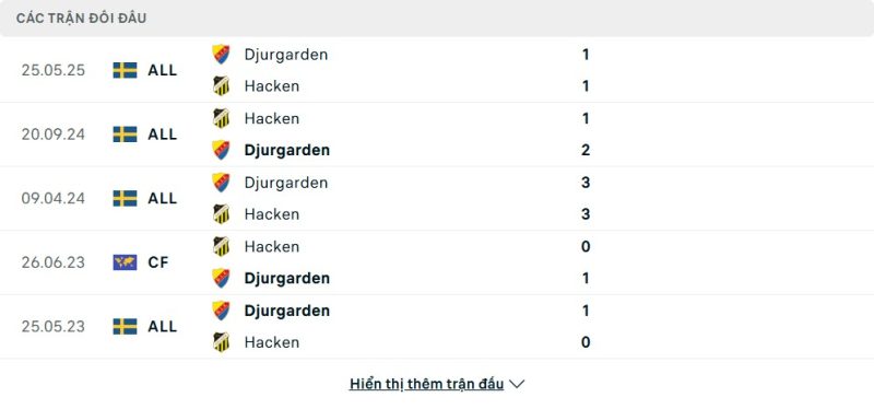 Thành tích đối đầu của BK Häcken vs Djurgårdens IF