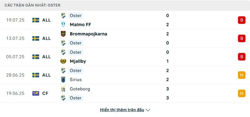 5 trận gần nhất của Östers IF: L-L-L-D-D