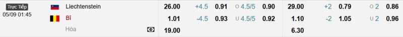 Bảng Tỷ lệ kèo bóng đá Liechtenstein vs Bỉ