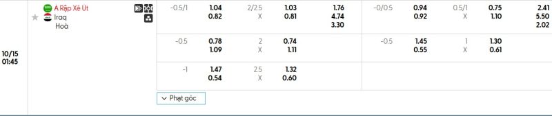 • Kèo bóng đá châu Á hiệp 1: Iraq +0.25
