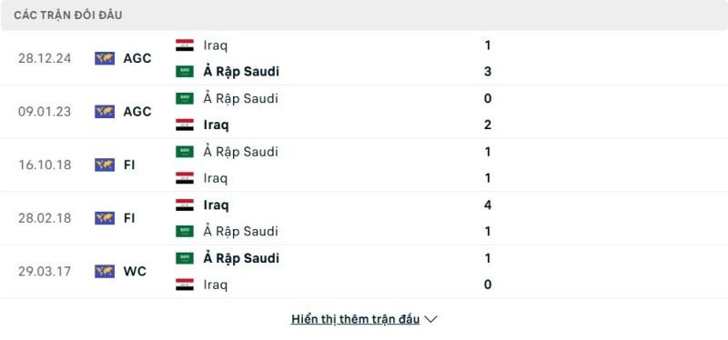Thành tích đối đầu của Ả Rập Xê Út vs Iraq