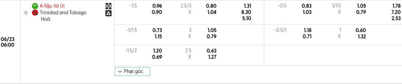 Bảng Tỷ lệ kèo bóng đá Ả Rập Xê Út vs Trinidad & Tobago