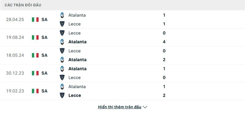 Thống kê phong độ gần đây Atalanta vs Lecce