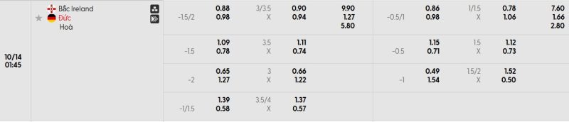 Bảng Tỷ lệ kèo bóng đá Bắc Ireland vs Đức
