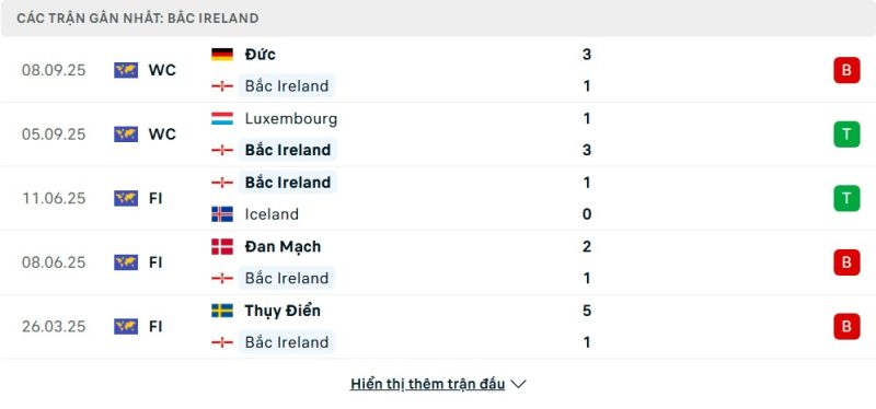 Thống kê phong độ gần đây Bắc Ireland vs Đức