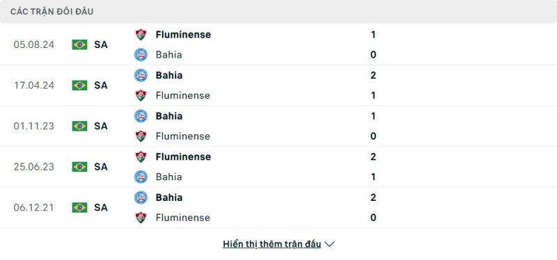Thống kê phong độ gần đây Bahia vs Fluminense
