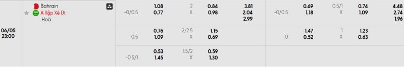 Bảng Tỷ lệ kèo bóng đá Bahrain vs Ả Rập Xê Út