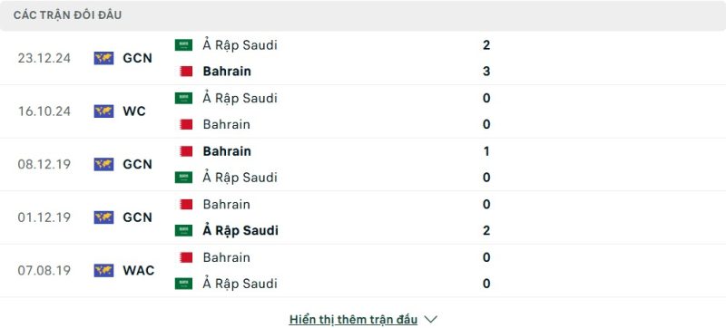 Thành tích đối đầu của Bahrain vs Ả Rập Xê Út