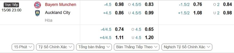 - Kèo tỷ số bóng đá hiệp 1: Bayern Munich 4-0 Auckland City