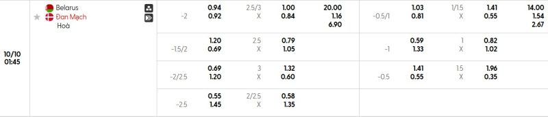 Bảng Tỷ lệ kèo bóng đá Belarus vs Đan Mạch