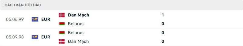 Thành tích đối đầu của Belarus vs Đan Mạch