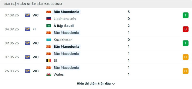 5 trận gần nhất của Bắc Macedonia: W-L-W-D-D