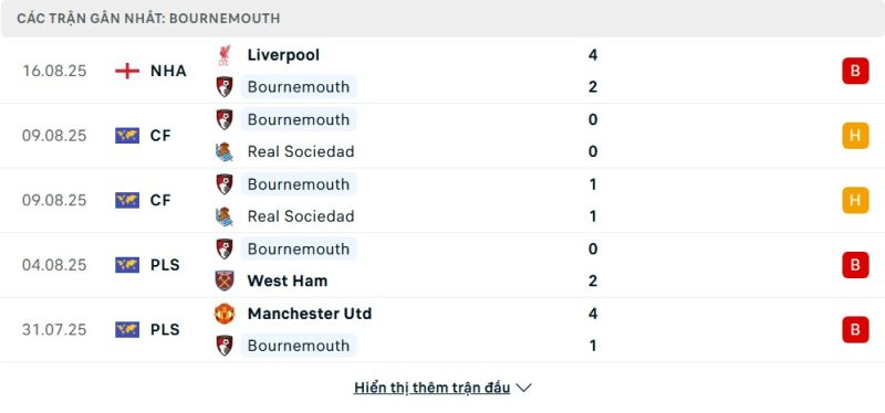Bournemouth đã có một khởi đầu không như ý khi để thua 2-4 trong chuyến làm khách trước đối thủ mạnh là Liverpool. Mặc dù thất bại, việc ghi được hai bàn vào lưới một đội bóng lớn cho thấy hàng công của họ vẫn có những điểm sáng. Hiện tại, “The Cherries” đang tạm đứng ở vị trí thứ 16 trên bảng xếp hạng và chưa có điểm nào. Giai đoạn tiền mùa giải của họ cũng không mấy ổn định với những trận thắng và thua đan xen. Với lợi thế sân nhà ở vòng đấu này, Bournemouth chắc chắn sẽ đặt mục tiêu giành trọn ba điểm đầu tiên của mùa giải.