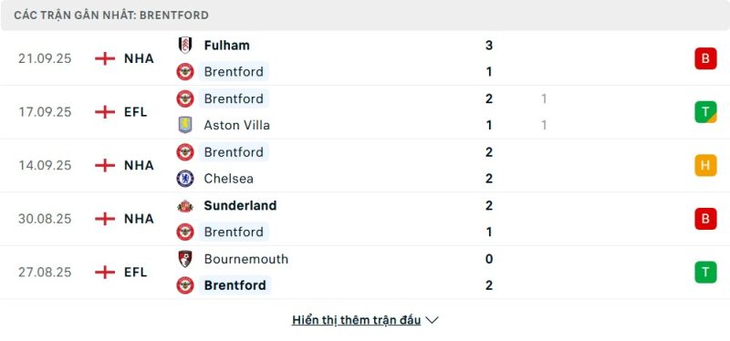 Brentford đang có khởi đầu không mấy suôn sẻ tại Premier League 2025/26 khi đang đứng ở vị trí thứ 17 trên bảng xếp hạng với chỉ 4 điểm sau 5 vòng đấu. Phong độ gần đây của “Bầy ong” cũng không thực sự tốt khi họ chỉ thắng 1, hòa 1 và thua tới 3 trong 5 trận gần nhất tại giải đấu cao nhất nước Anh. Trận thua 1-3 trước Fulham ở vòng đấu trước đã cho thấy nhiều vấn đề trong hệ thống phòng ngự của đội chủ sân Gtech Community.