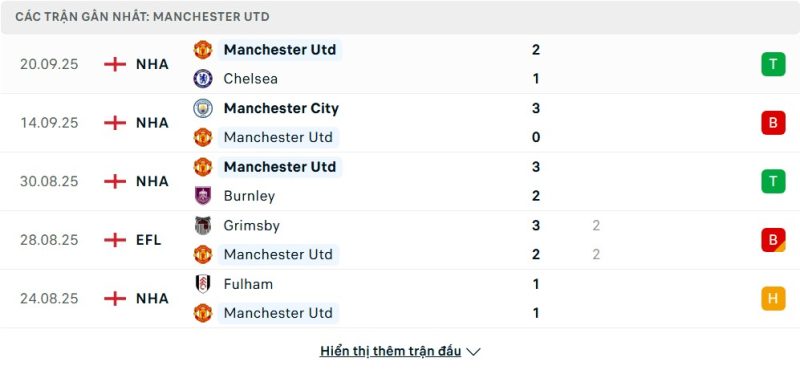 Bên kia chiến tuyến, Manchester United có được 2 chiến thắng, 1 trận hòa và phải nhận 2 thất bại. Trận thua đậm 0-3 trước đại kình địch Manchester City đã phơi bày nhiều điểm yếu của “Quỷ đỏ”. Tuy nhiên, ngay sau đó, họ đã có những chiến thắng quan trọng trước Burnley và Chelsea, cho thấy sự trở lại mạnh mẽ. Dù vậy, trận thua trên chấm luân lưu trước Grimsby ở EFL Cup lại một lần nữa cho thấy sự thiếu ổn định của đội bóng này.