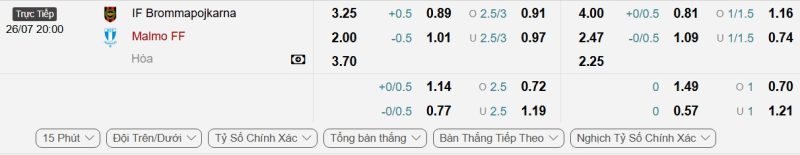 Bảng Tỷ lệ kèo bóng đá IF Brommapojkarna vs Malmö FF