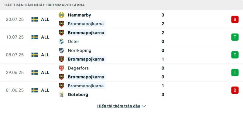 5 trận gần nhất của IF Brommapojkarna: L-W-W-W-L
