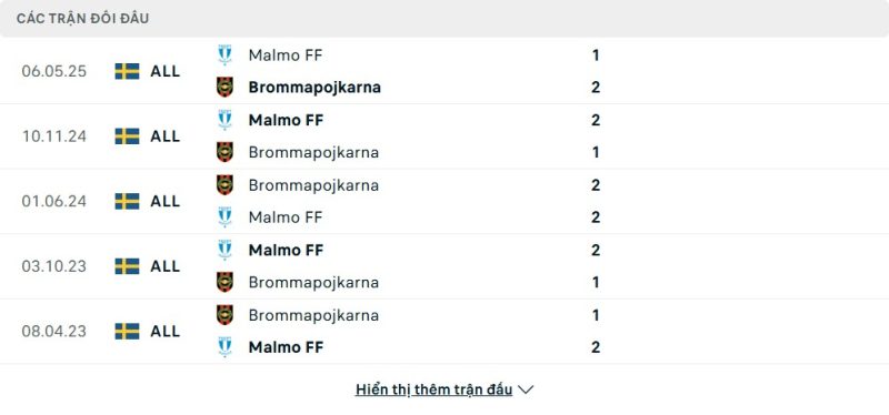 Thành tích đối đầu của IF Brommapojkarna vs Malmö FF