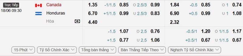 - Kèo tỷ số bóng đá hiệp 1: Canada 3-0 Honduras