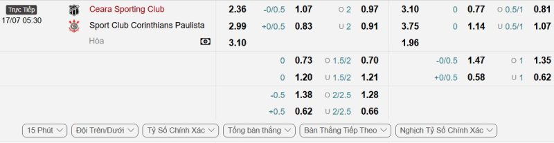 Bảng Tỷ lệ kèo bóng đá Ceará vs Corinthians