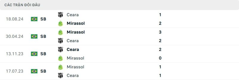 Thống kê phong độ gần đây Ceará vs Mirassol