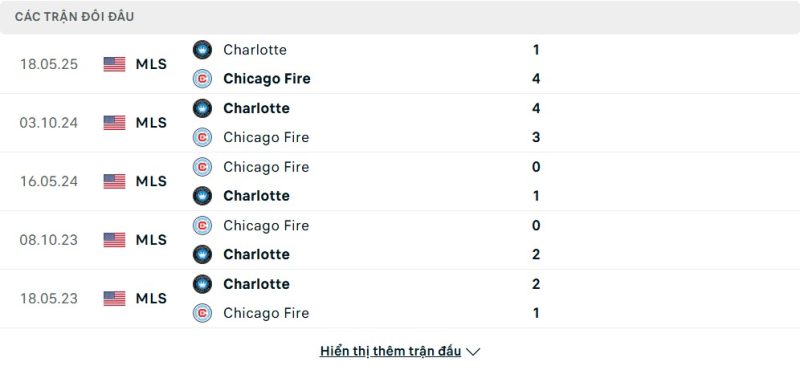Thành tích đối đầu của Chicago Fire vs Charlotte FC