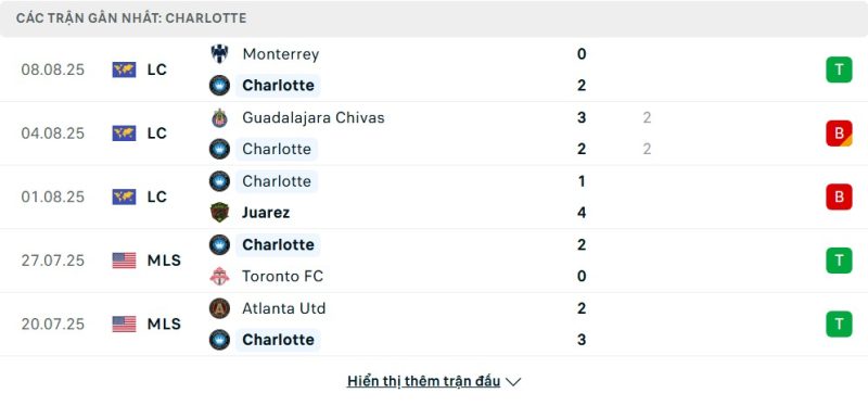 Bên kia chiến tuyến, Charlotte FC lại thể hiện bộ mặt ấn tượng trong thời gian qua, với 4 chiến thắng trong 5 trận gần nhất. Họ đánh bại Monterrey 2-0, Toronto FC 2-0 và Atlanta United 3-2, qua đó vươn lên vị trí cạnh tranh suất play-off. Tuy nhiên, đội bóng này cũng bộc lộ điểm yếu ở khả năng phòng ngự khi để thua đậm 1-4 trước Juarez, cho thấy vẫn còn khoảng trống cần khắc phục nếu muốn duy trì mạch thắng.
