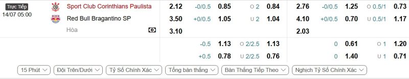 Bảng Tỷ lệ kèo bóng đá Corinthians vs Red Bull Bragantino