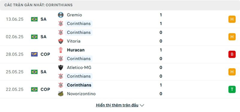 - Phong độ của Corinthians