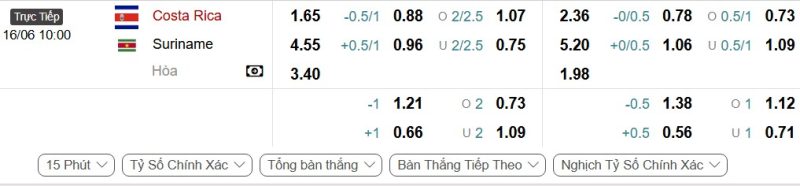Bảng Tỷ lệ kèo bóng đá Costa Rica vs Suriname