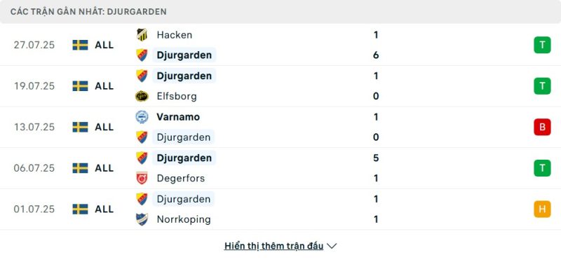 Thống kê phong độ gần đây Djurgårdens IF vs Halmstads BK