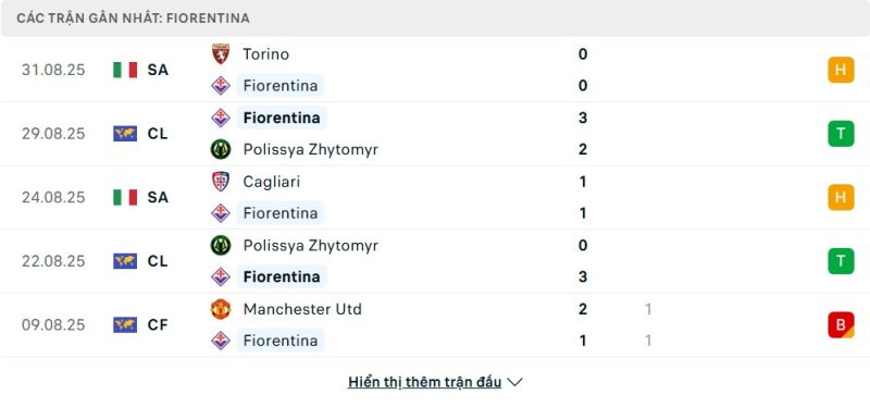Fiorentina khởi đầu mùa giải Serie A năm nay với hai trận hòa liên tiếp trước Cagliari và Torino, qua đó tạm xếp ở vị trí thứ 12 trên bảng xếp hạng. Dù chưa có chiến thắng nào, đội bóng áo tím vẫn giữ được sự ổn định nhờ vào khả năng phòng ngự chắc chắn. Trước đó, họ cũng tạo dấu ấn ở đấu trường châu Âu khi thắng Polissya cả hai lượt trận tại UEFA Conference League. Nhìn chung, đội bóng xứ Florence vẫn đang cần thêm sự bứt phá để tìm lại cảm hứng chiến thắng tại Serie A.