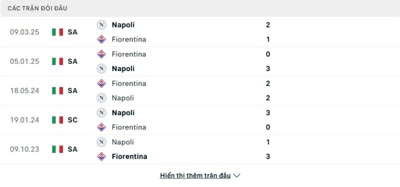 Thống kê phong độ gần đây Fiorentina vs Napoli