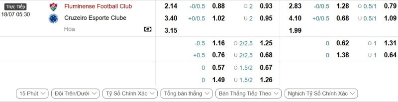 Bảng Tỷ lệ kèo bóng đá Fluminense vs Cruzeiro