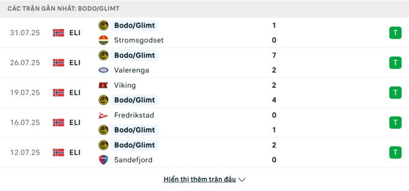 Bên kia chiến tuyến, Bodø/Glimt tiếp tục khẳng định vị thế của một ứng cử viên vô địch hàng đầu tại Eliteserien 2025. Hiện tại, họ đang xếp thứ 2 trên bảng xếp hạng với 35 điểm sau 16 trận, chỉ kém đội dẫn đầu Viking 4 điểm nhưng thi đấu ít hơn 2 trận. Phong độ của Glimt là cực kỳ ấn tượng với chuỗi 5 chiến thắng liên tiếp trong 5 trận gần nhất. Đáng chú ý là những chiến thắng hủy diệt như 7-2 trước Valerenga và 4-2 trước Viking, chứng tỏ sức mạnh tấn công đáng sợ và khả năng kiểm soát trận đấu vượt trội của họ.