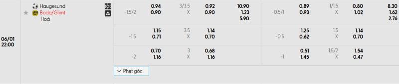 - Kèo tỷ số bóng đá hiệp 1: Haugesund 1-2 Bodø/Glimt