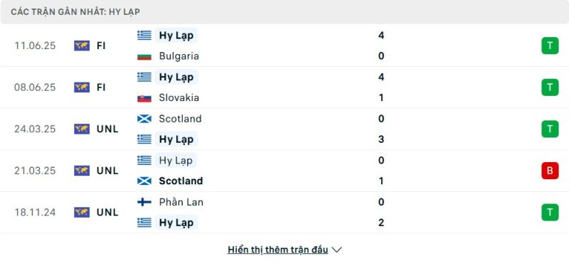 Hy Lạp đang có một giai đoạn thi đấu cực kỳ thành công và ổn định. Họ đã thể hiện sức mạnh vượt trội trong thời gian gần đây với những chiến thắng cách biệt đầy ấn tượng. Đáng chú ý là hai trận hủy diệt Bulgaria và Slovakia với cùng tỷ số 4-0, cùng với đó là thắng lợi 3-0 thuyết phục trước một đối thủ khó chịu trong cùng bảng đấu là Scotland. Những kết quả này không chỉ mang về điểm số mà còn là lời khẳng định đanh thép về tham vọng của họ, cho thấy một đội tuyển đang vận hành trơn tru và đạt điểm rơi phong độ.
