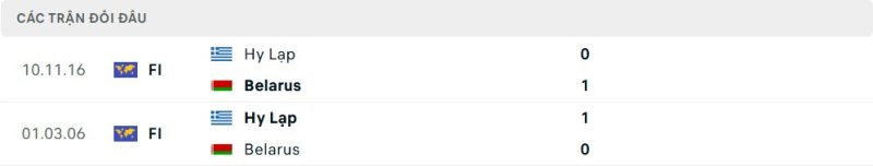 Thành tích đối đầu của Hy Lạp vs Belarus