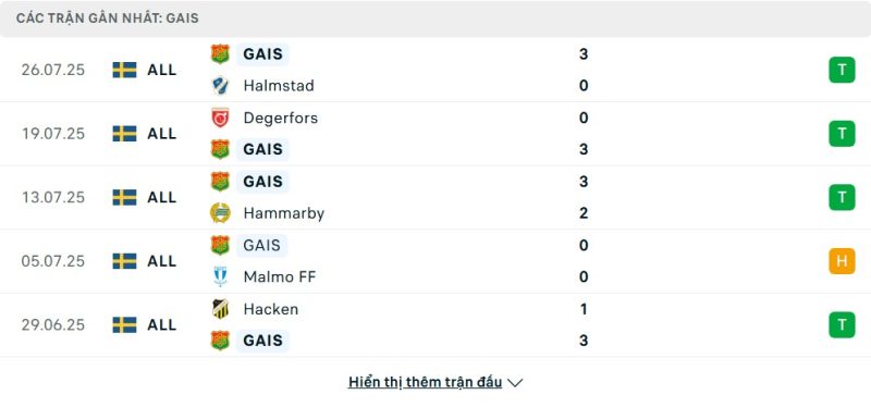 GAIS đang cho thấy sự tự tin và hiệu quả trong từng pha triển khai bóng. Lối đá của họ dựa trên tính tổ chức cao, tận dụng tốt tốc độ và kỹ thuật của các tiền vệ cánh. Ở các trận gần đây, GAIS thường xuyên đẩy cao đội hình sau hiệp 1 và tạo ra khác biệt nhờ sự lạnh lùng trong dứt điểm. Họ cũng ít khi bị cuốn vào lối chơi hỗn loạn, mà ngược lại rất biết cách điều tiết nhịp độ trận đấu. Điều này khiến GAIS trở thành đối thủ khó chịu cho bất kỳ đội bóng nào ở thời điểm hiện tại.