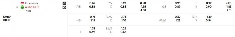 Bảng Tỷ lệ kèo bóng đá Indonesia vs Ả Rập Xê Út